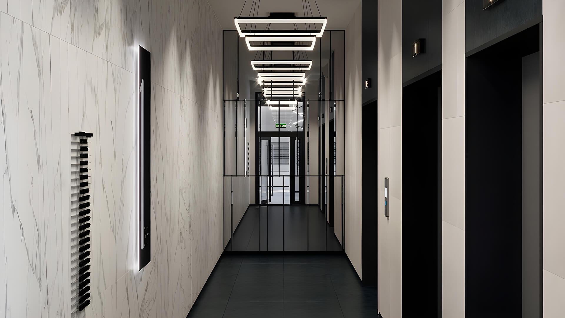 Лобби выступают связующим звеном между домом и городом: здесь размещены стойки консьерж-службы, зоны для приёма посетителей, камеры хранения, места для колясок и велосипедов. Открытые входы в коммерческие пространства первого этажа создают ощущение городского ритма, позволяя легко сочетать приватность жилья и активную жизнь.